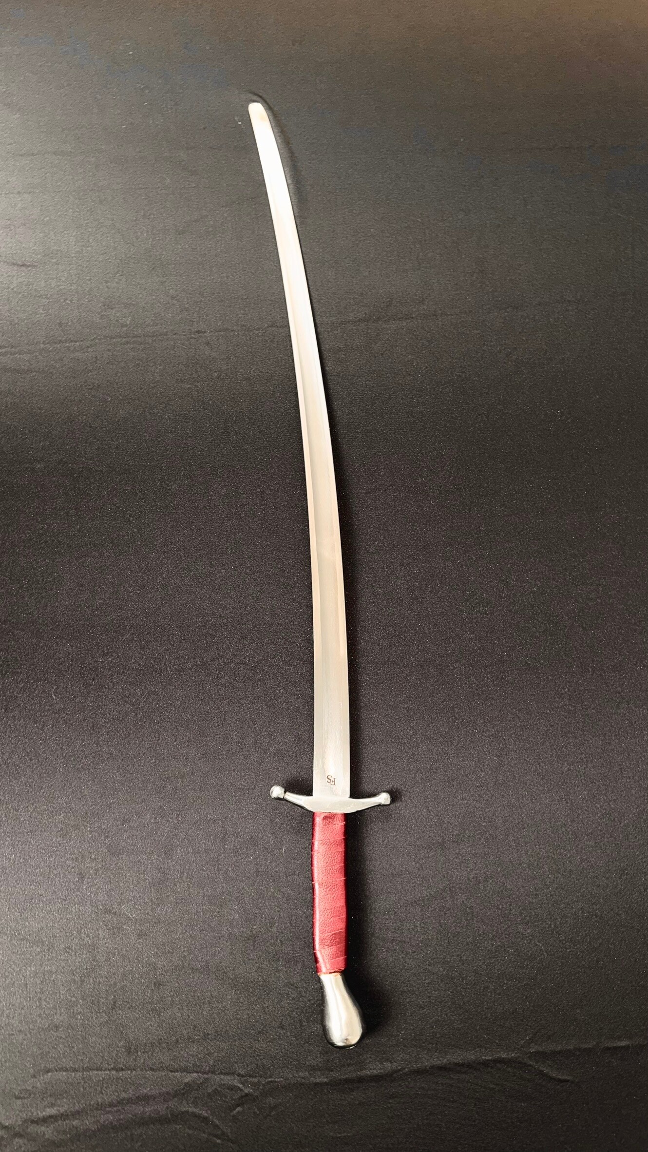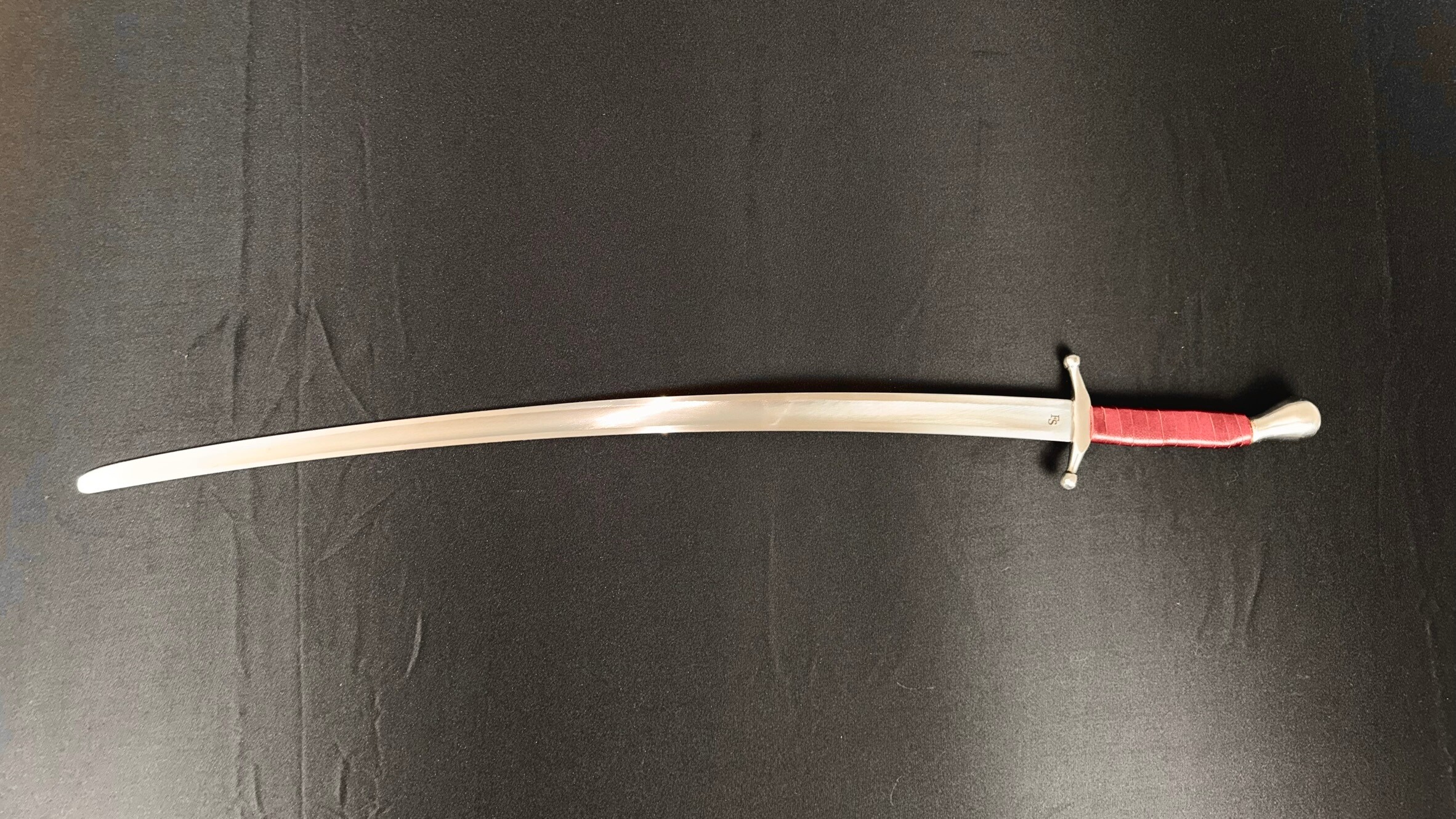 This saber is ready for combat use, with blunt edges and a rounded tip. It comes with a one-year warranty.