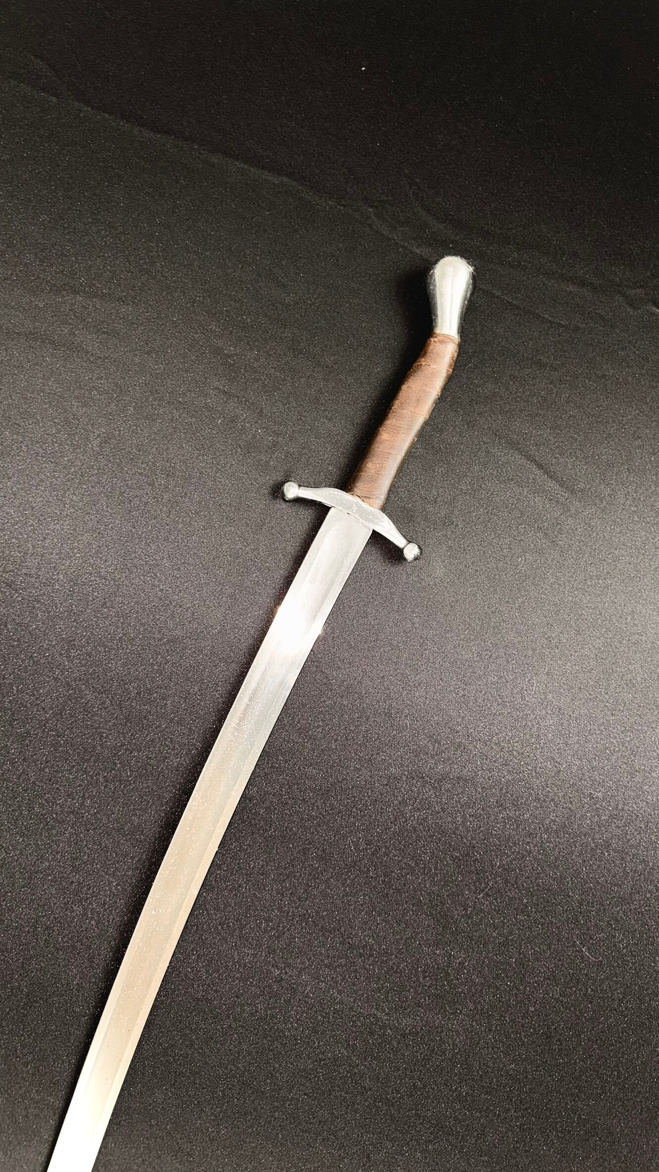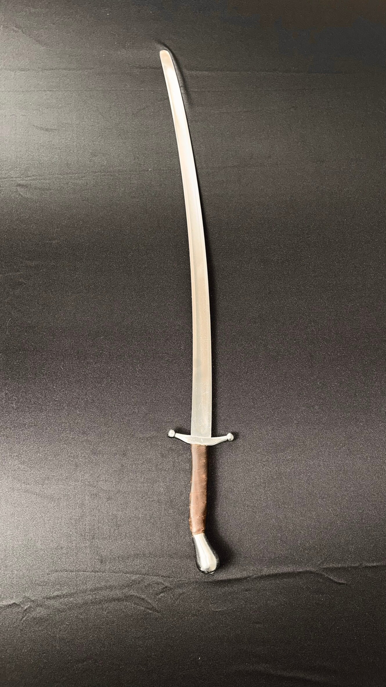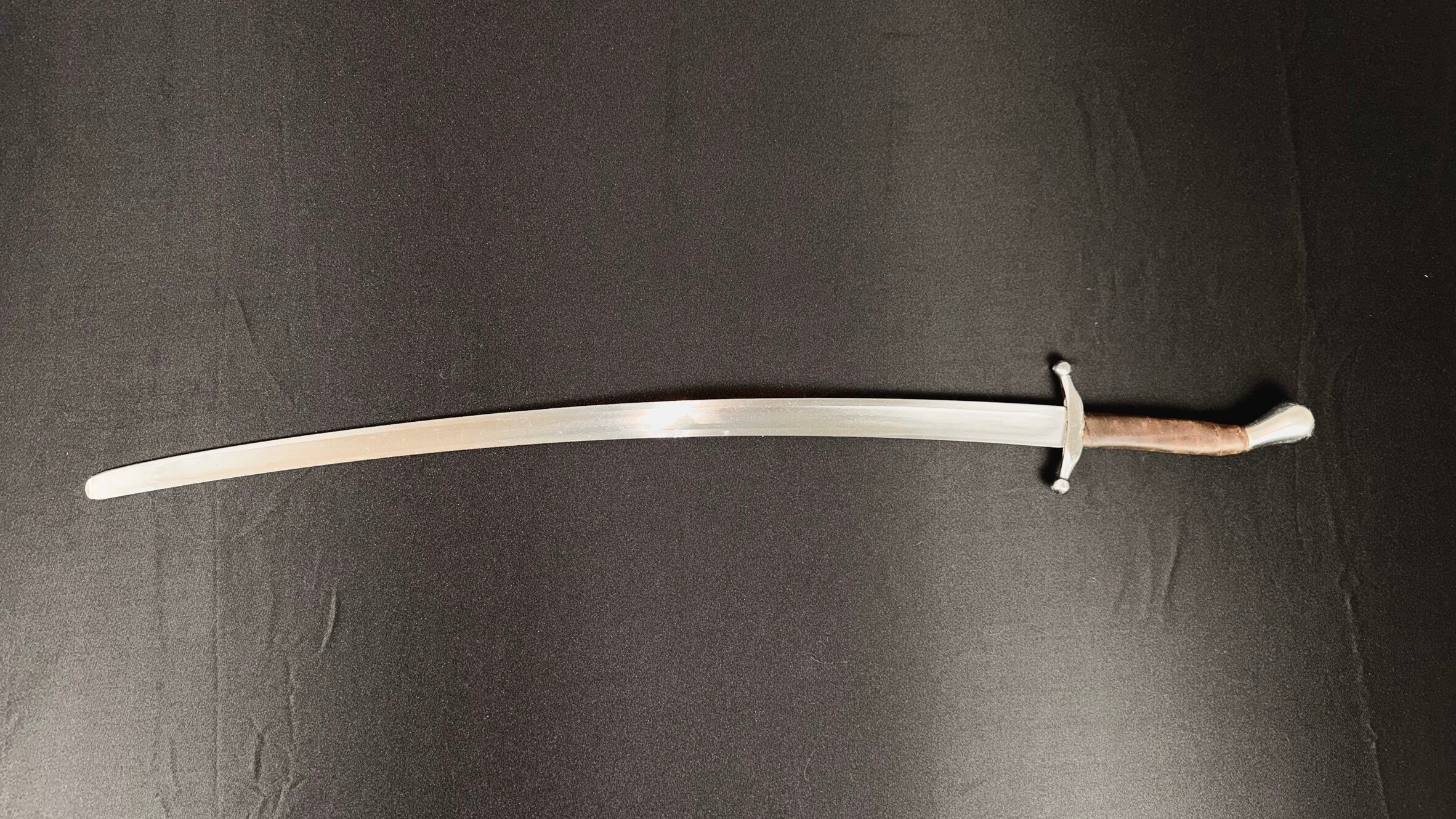 This saber is ready for combat use, with blunt edges and a rounded tip. It comes with a one-year warranty.