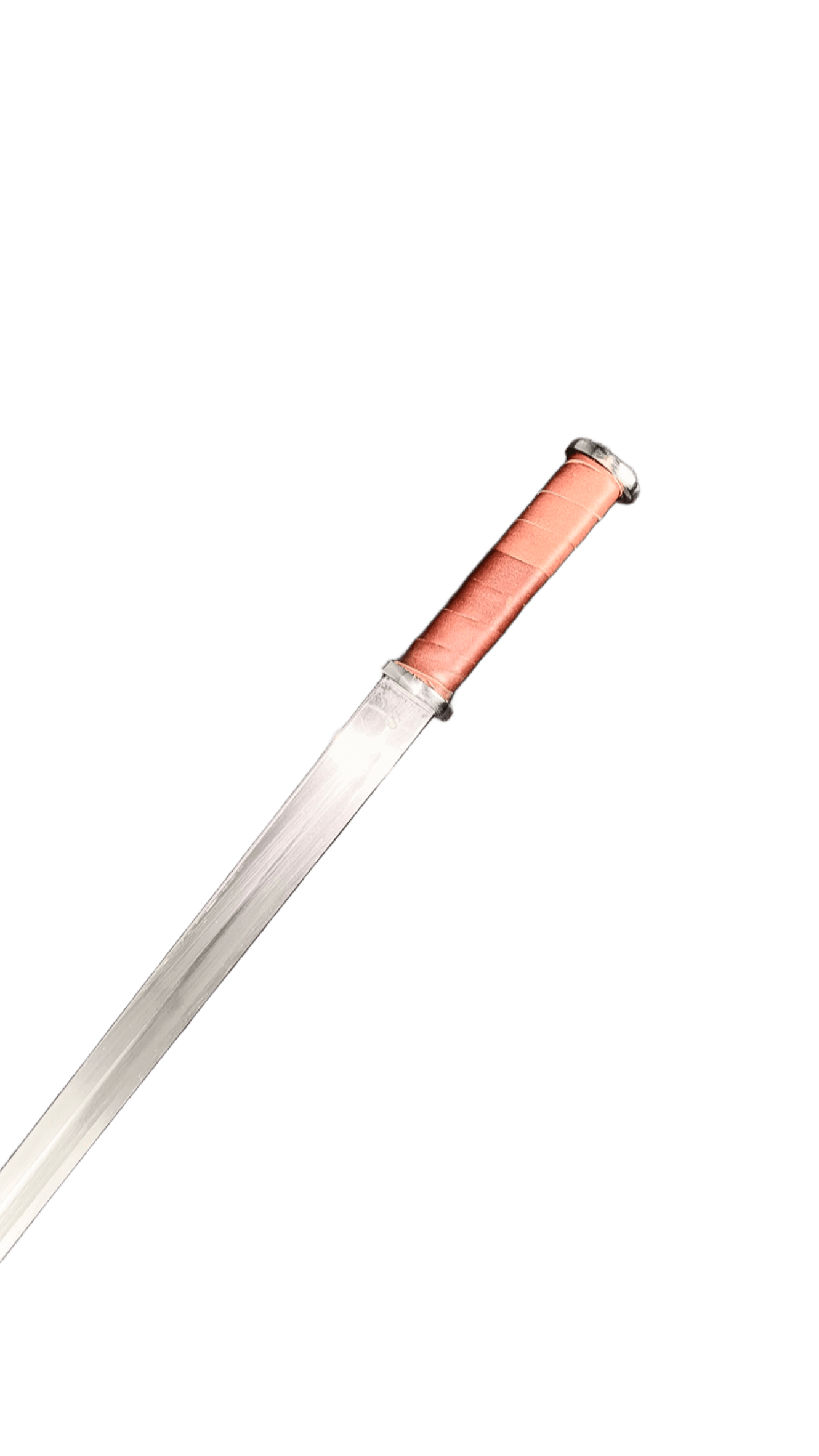 This seax is ready for combat use, with blunt edges and a rounded tip. It comes with a one-year warranty.