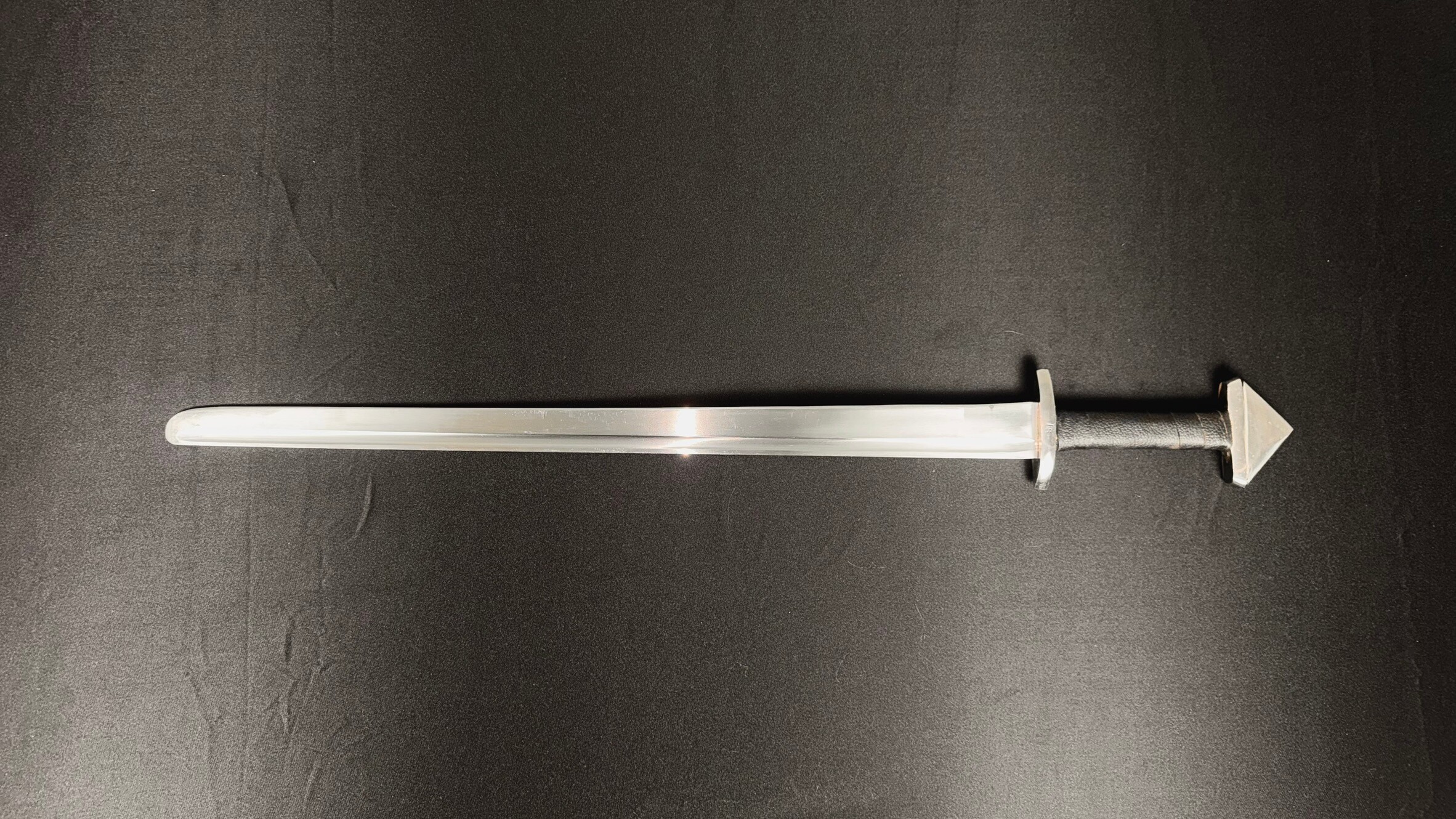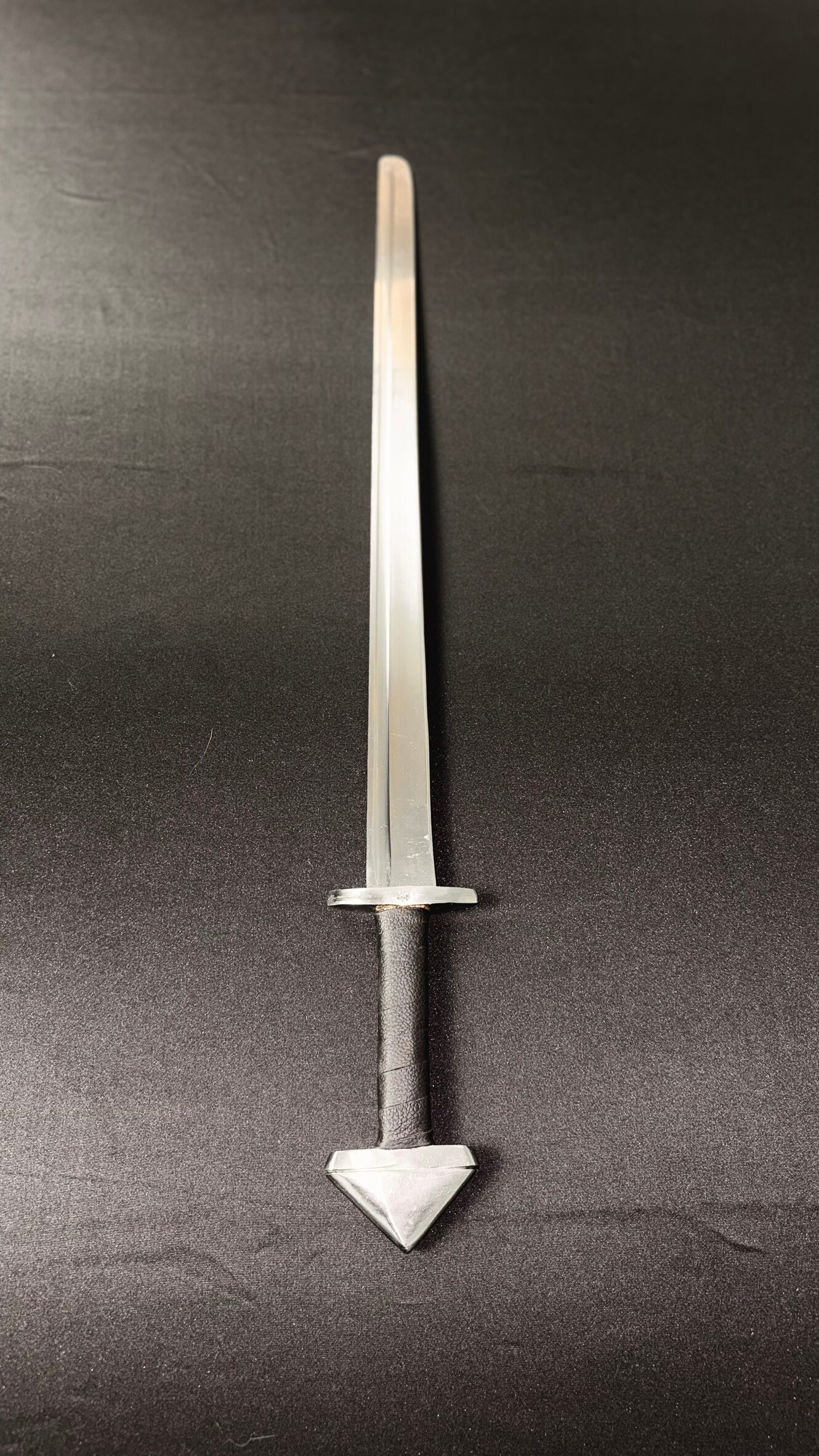 This sword is ready for combat use, with blunt edges and a rounded tip. It comes with a one-year warranty.