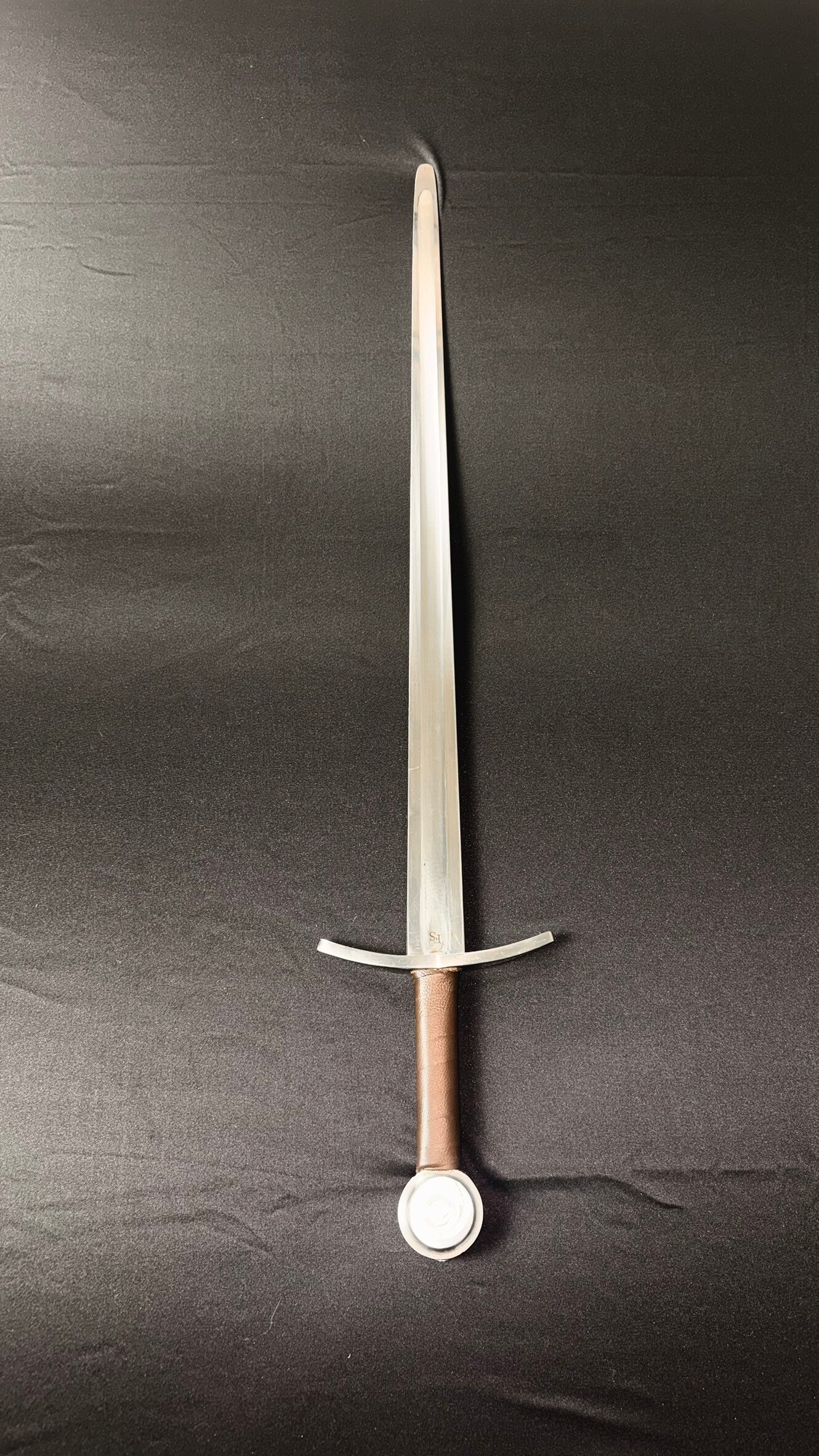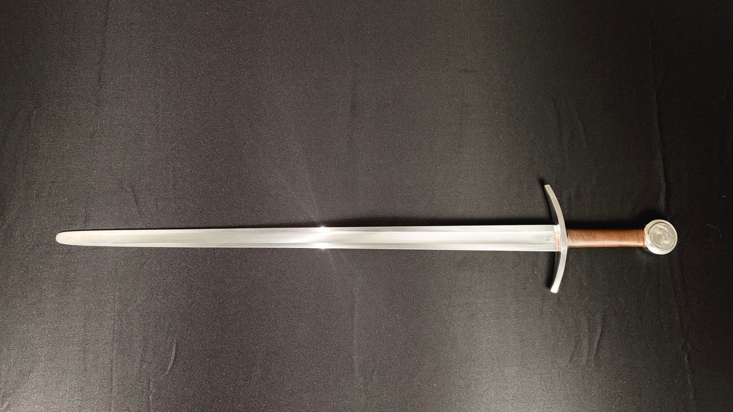 This sword is ready for combat use, with blunt edges and a rounded tip. It comes with a one-year warranty.