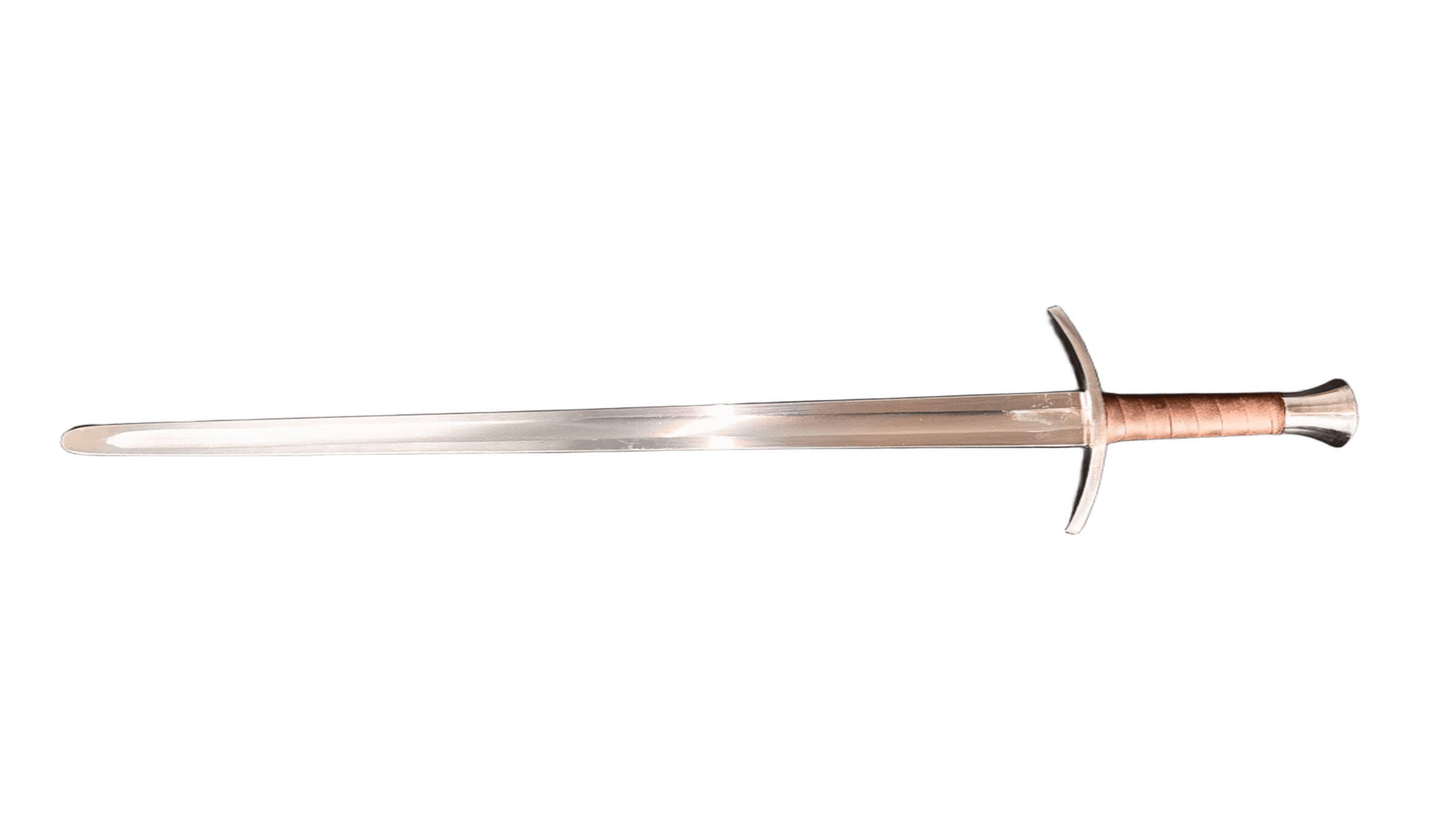 This sword is ready for combat use, with blunt edges and a rounded tip. It comes with a one-year warranty.