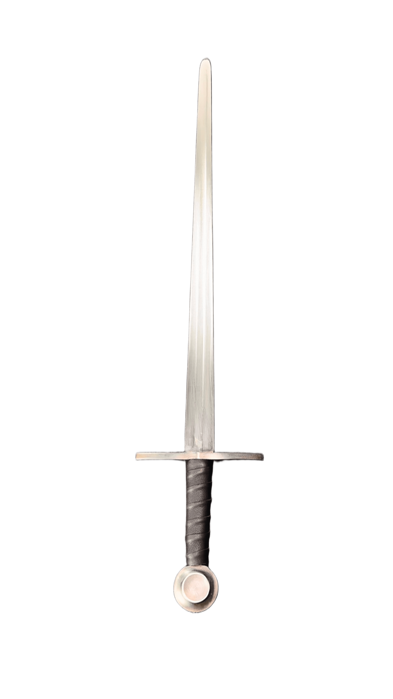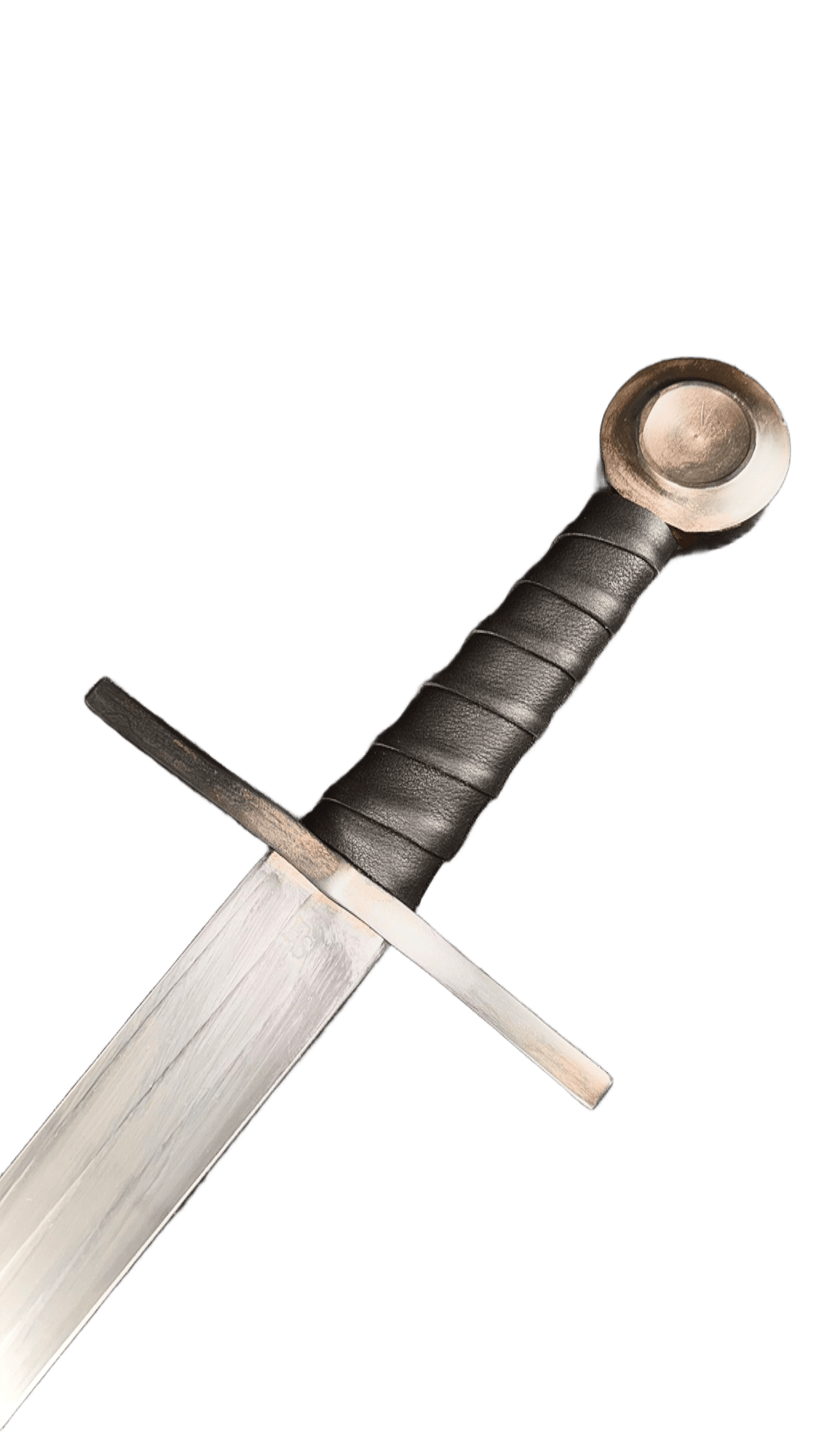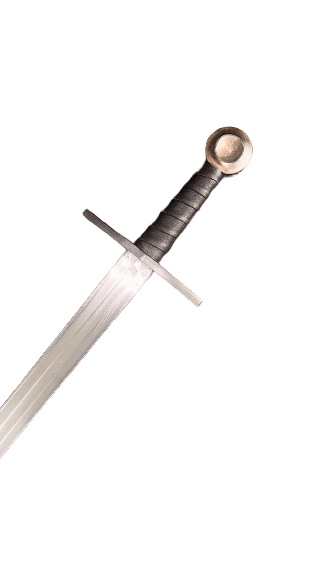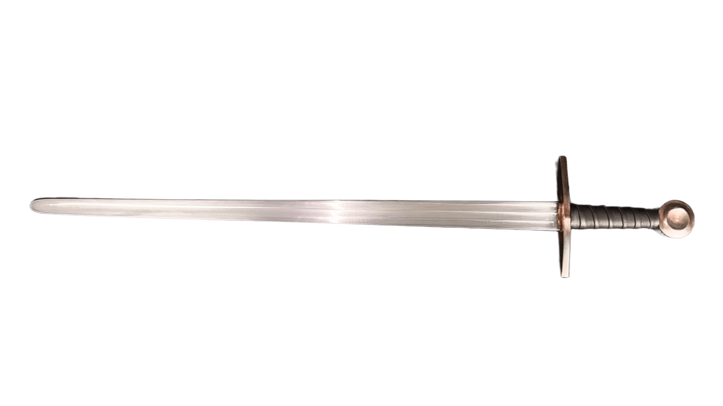 This sword is ready for combat use, with blunt edges and a rounded tip. It comes with a one-year warranty. Triple fuller, the pommel and guard were oxidized.