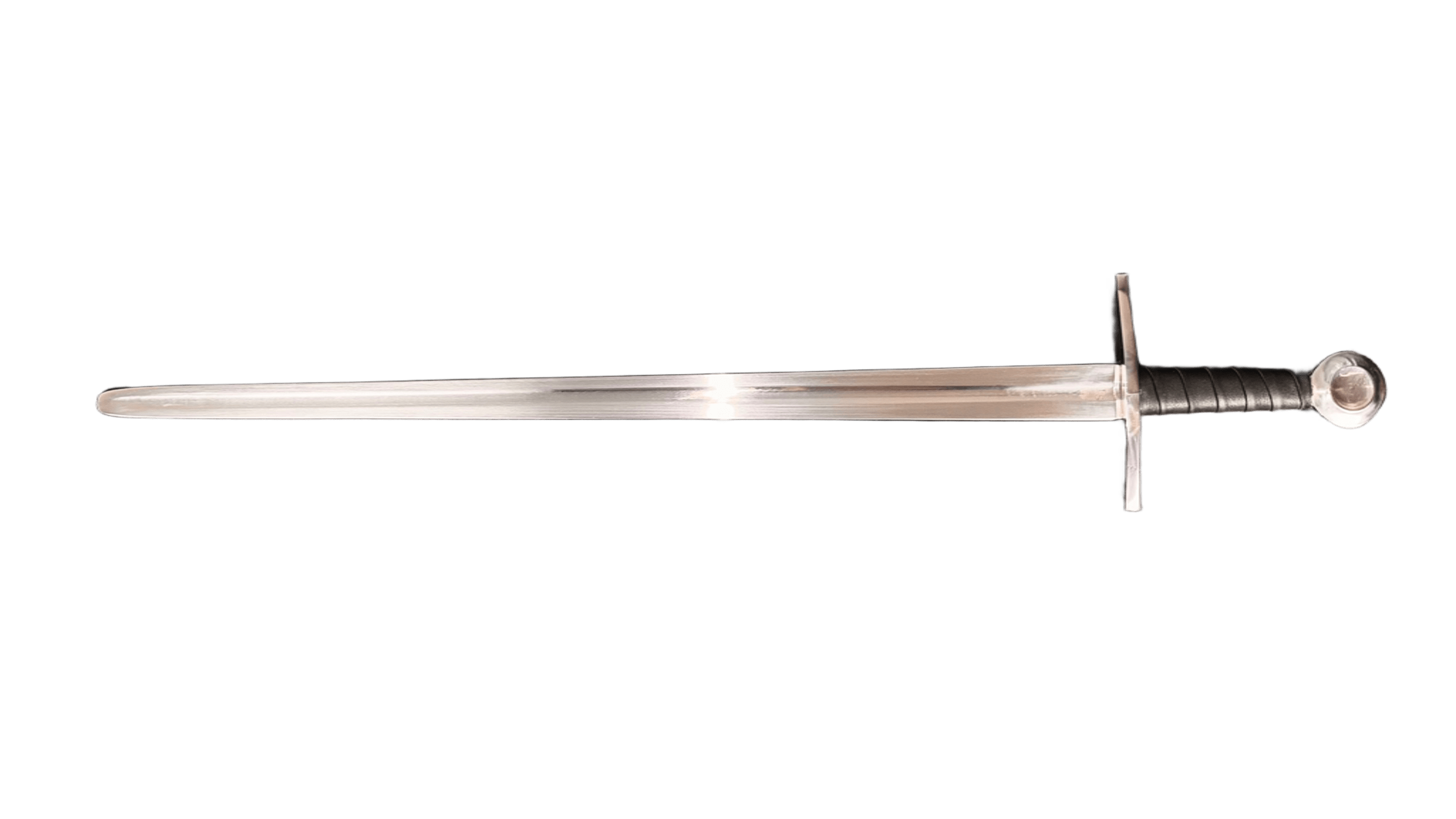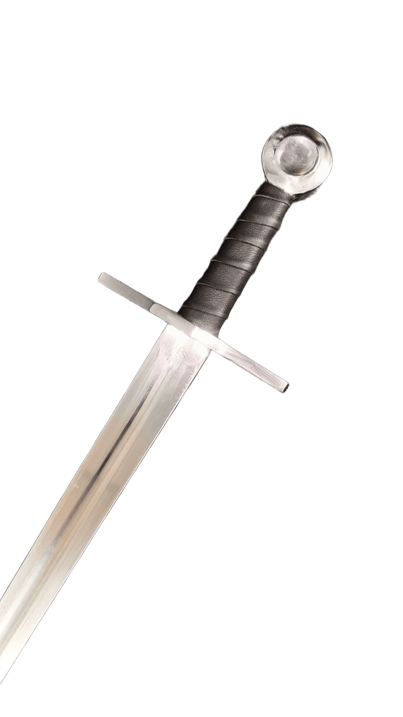 This sword is ready for combat use, with blunt edges and a rounded tip. It comes with a one-year warranty.