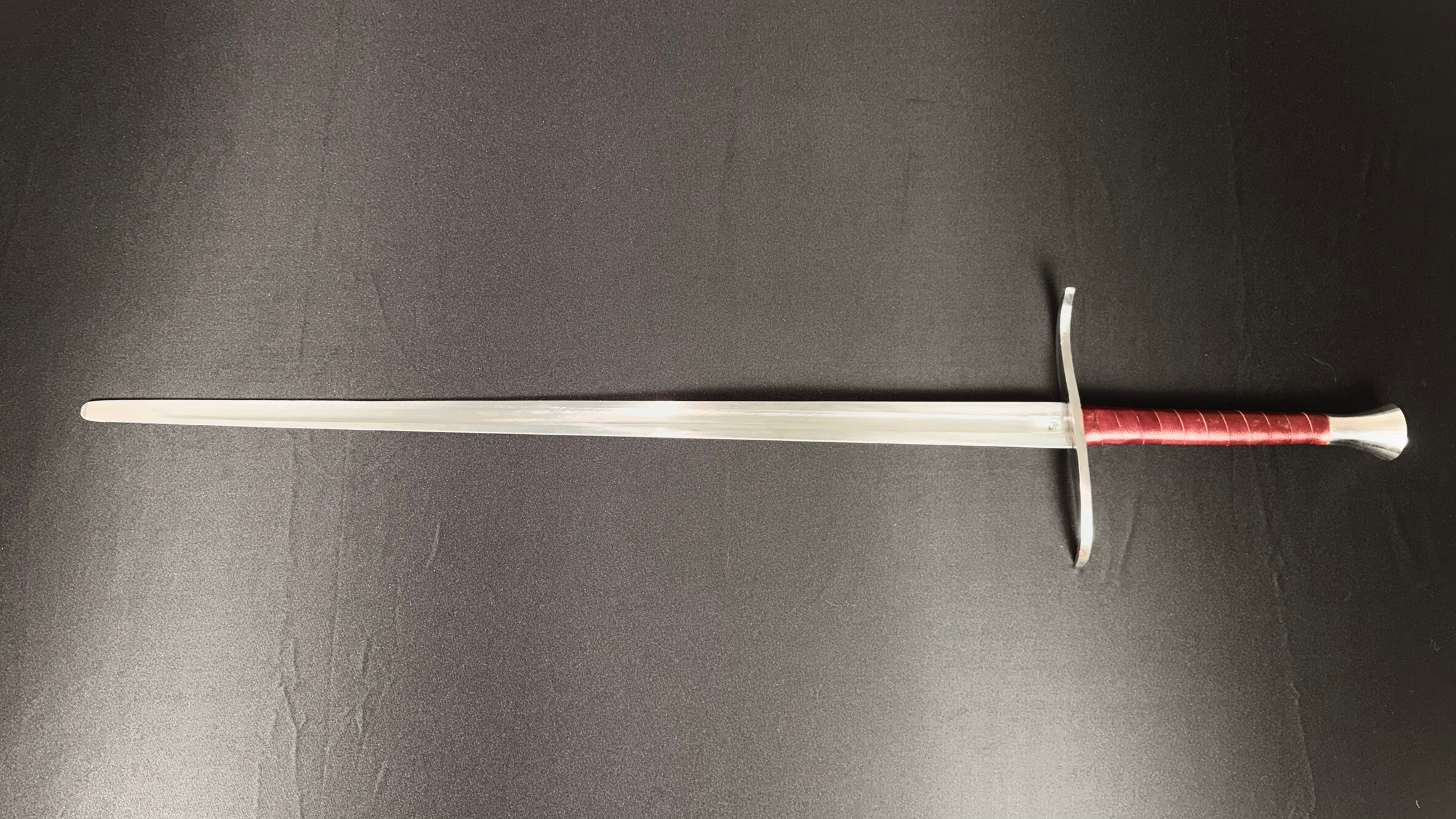 This sword is ready for combat use, with blunt edges and a rounded tip. It comes with a one-year warranty.