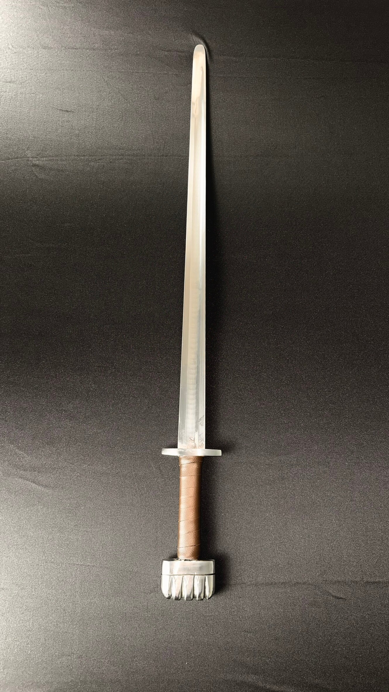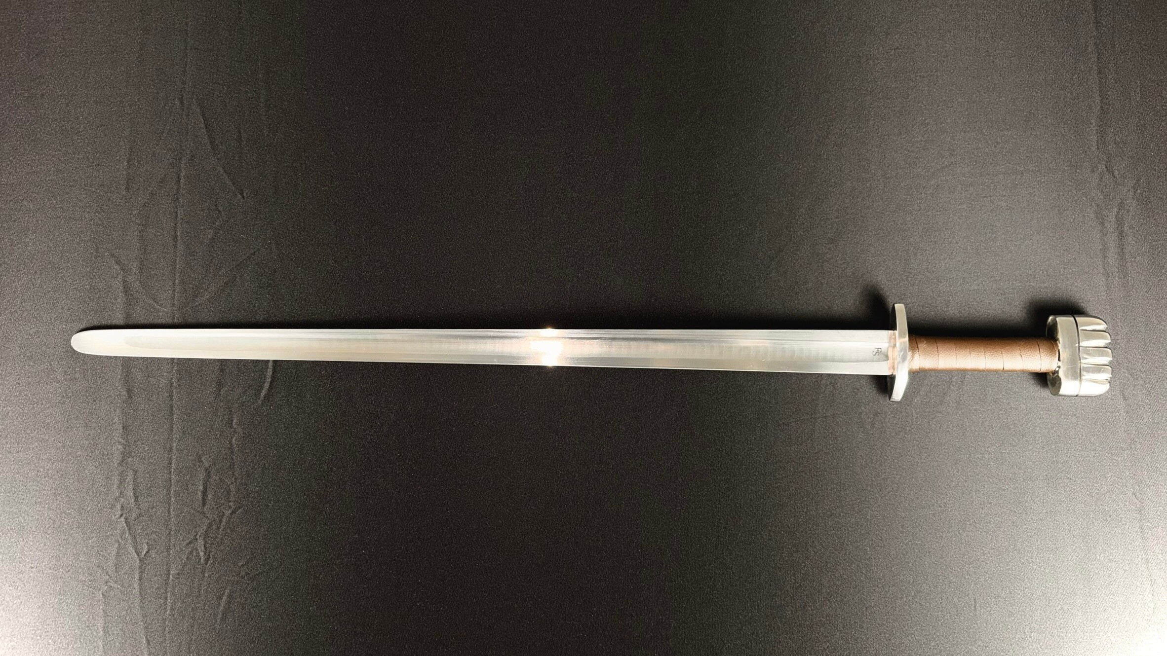 This sword is ready for combat use, with blunt edges and a rounded tip. It comes with a one-year warranty.