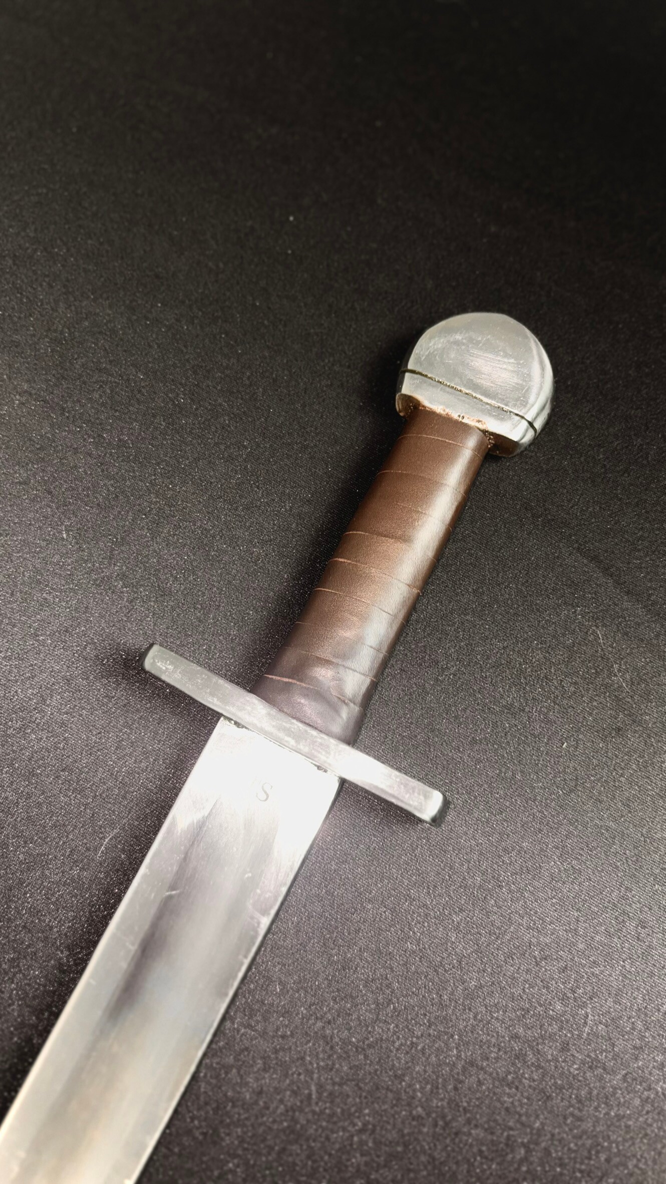 This sword is ready for combat use, with blunt edges and a rounded tip. It comes with a one-year warranty.