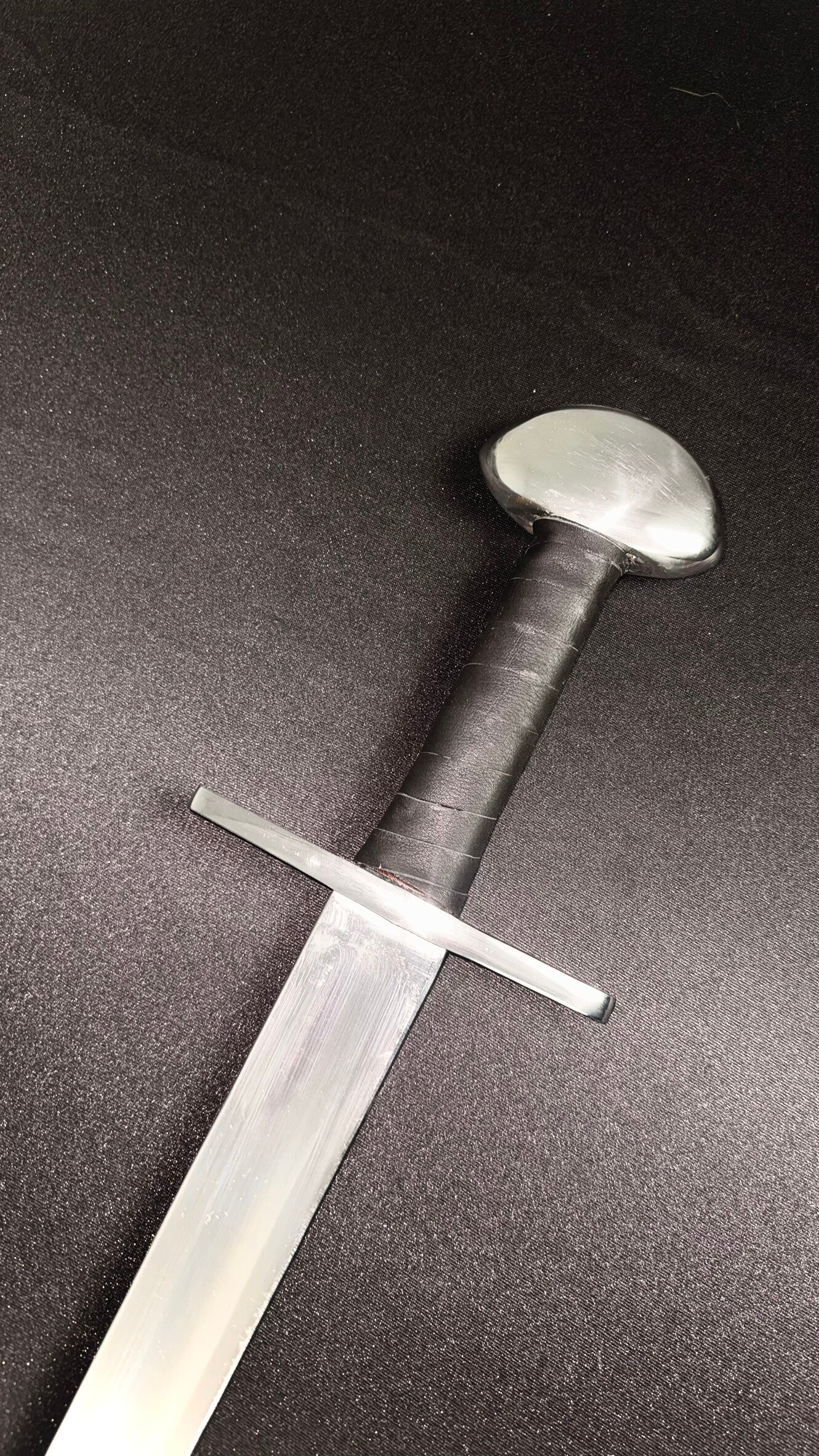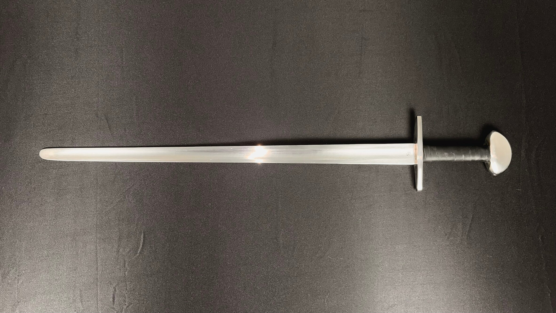 This sword is ready for combat use, with blunt edges and a rounded tip. It comes with a one-year warranty.