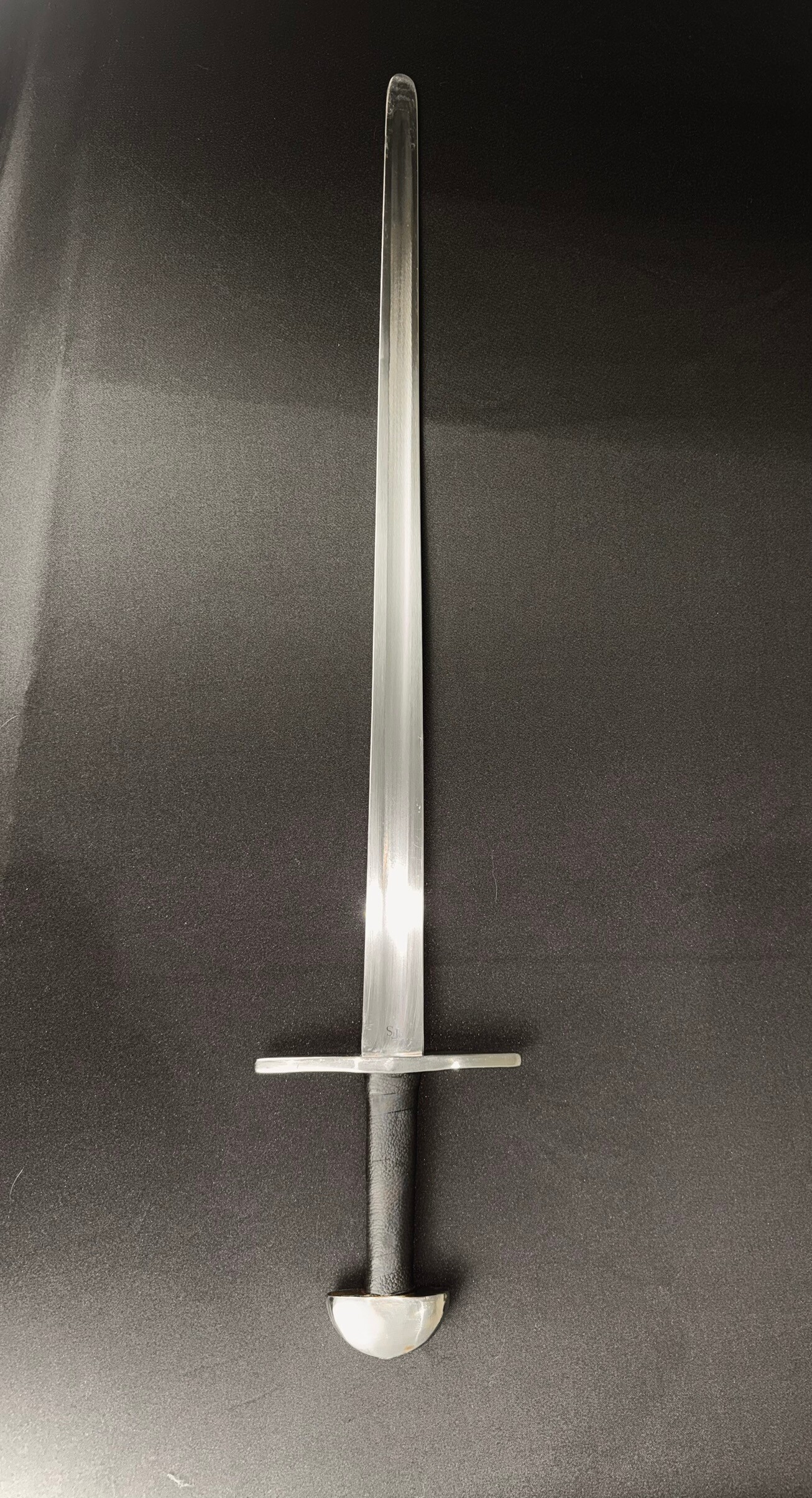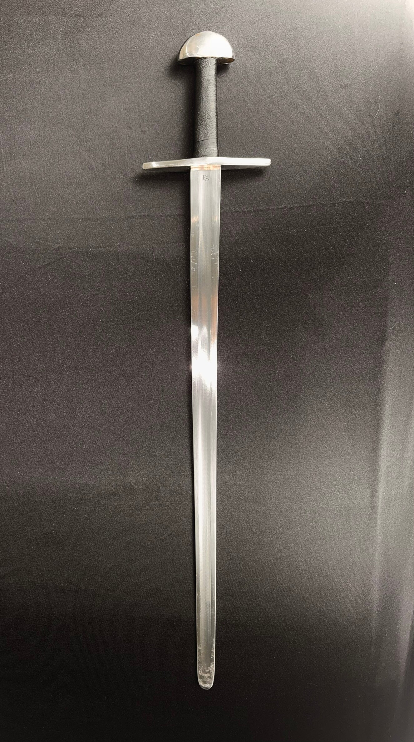 This sword is ready for combat use, with blunt edges and a rounded tip. It comes with a one-year warranty.
